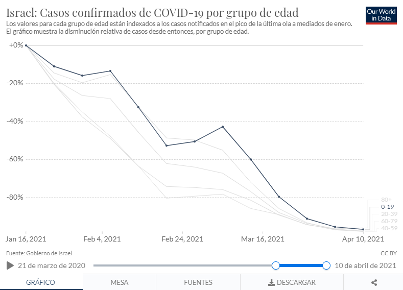 Israel: Casos confirmados de COVID-19 por grupo de edad