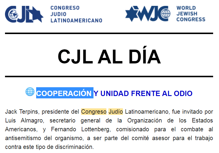 Esperamos a través de esta valiosa oportunidad poder aportar el conocimiento y la experiencia del CJL en la temática, consolidados a partir de años de trabajo en la lucha contra el antisemitismo.